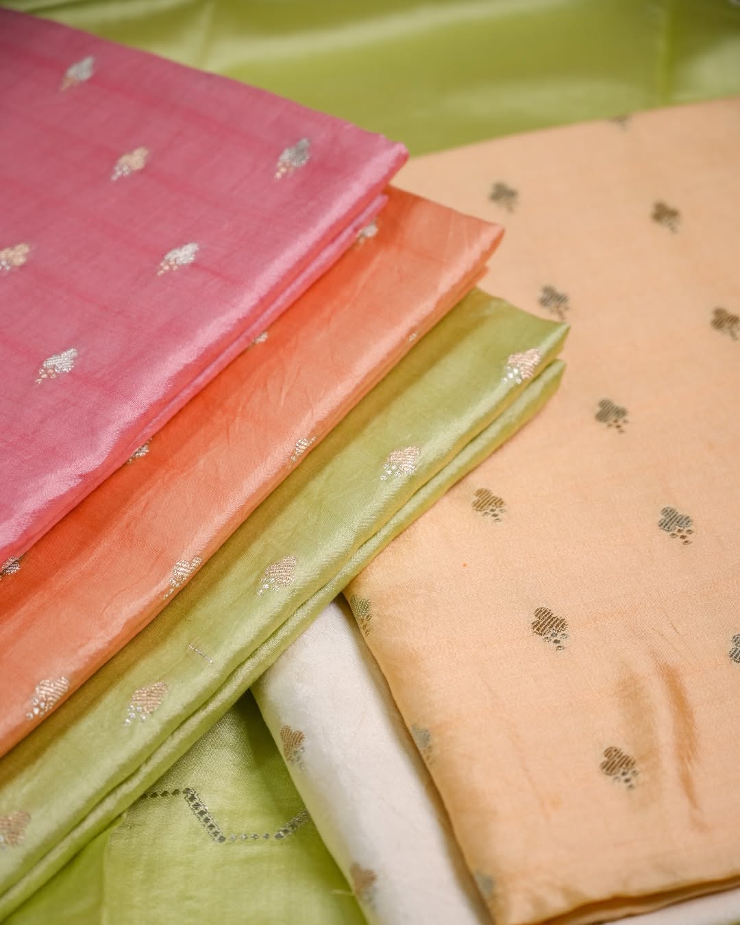 These Banarasi Chiniya Silk Suit Sets, available in five stunning colors, combine festive elegance with effortless comfort. Crafted in soft, flowing Chiniya silk, each set features subtle zari accents that shimmer delicately, making them perfect for evening celebrations, small gatherings, or moments when style and ease go hand in hand. Lightweight, graceful, and joyful to wear, these suits turn every occasion into a cherished memory.