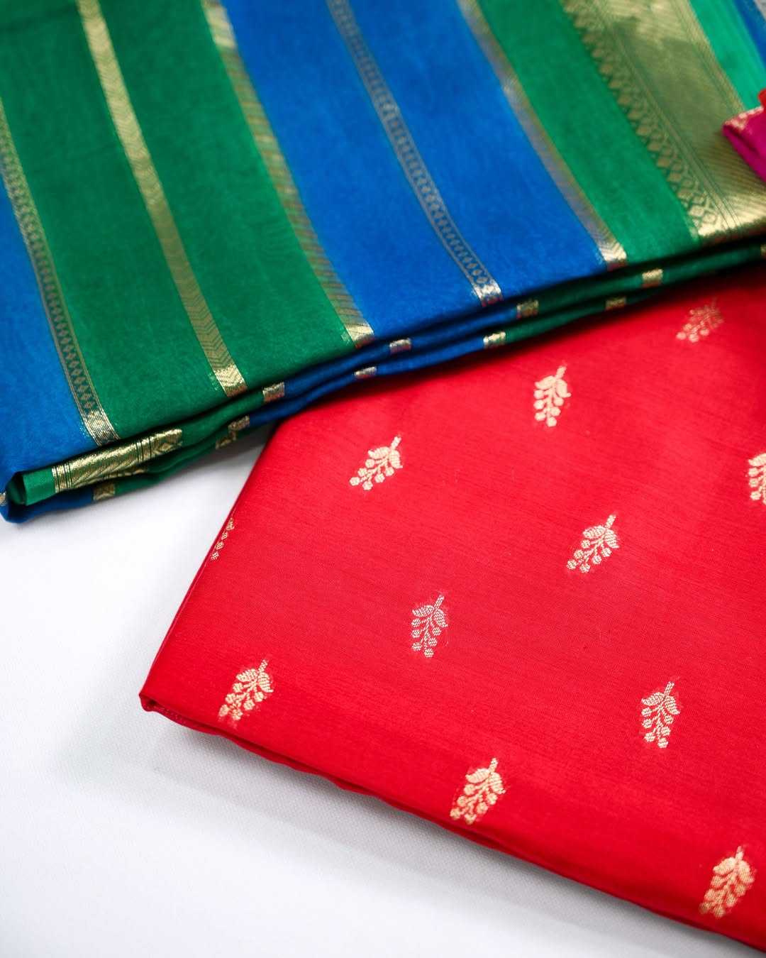 These Banarasi Hand-Dyed Organza Chanderi Suit Sets are crafted in the timeless rangkaat weave of Chanderi, where shades blend seamlessly into each other like a soft melody. The lightweight organza dupatta flows with effortless grace, adding an airy elegance to the ensemble. Gentle, breathable, and refined, this suit set is not just worn but experienced - made to linger in memory with every drape. A true reflection of Kasi Bunkari, where fabrics breathe stories into life.