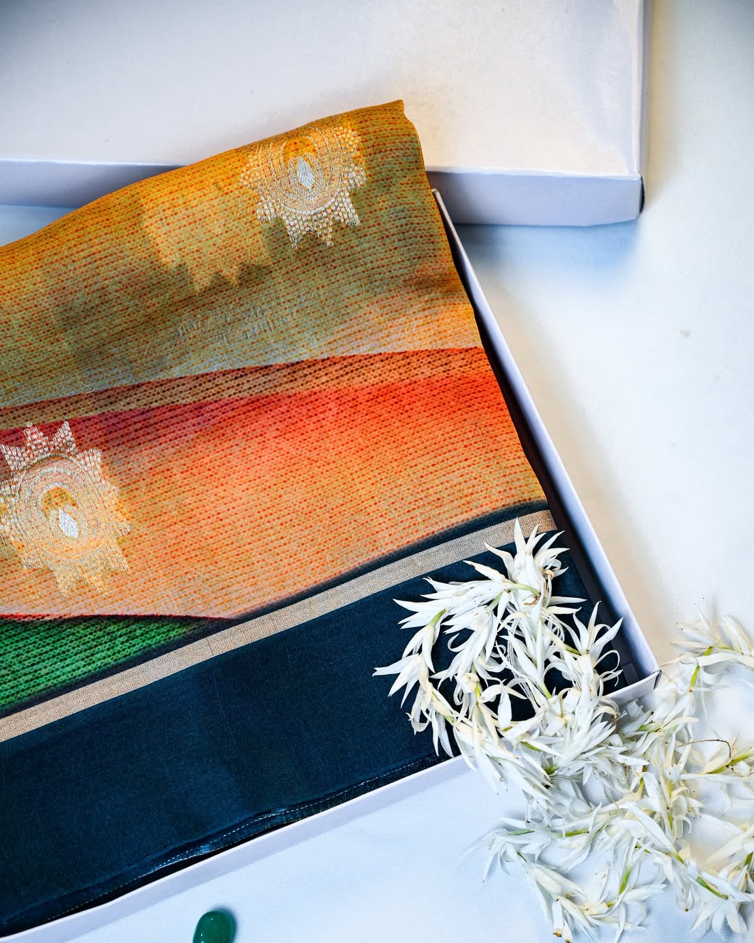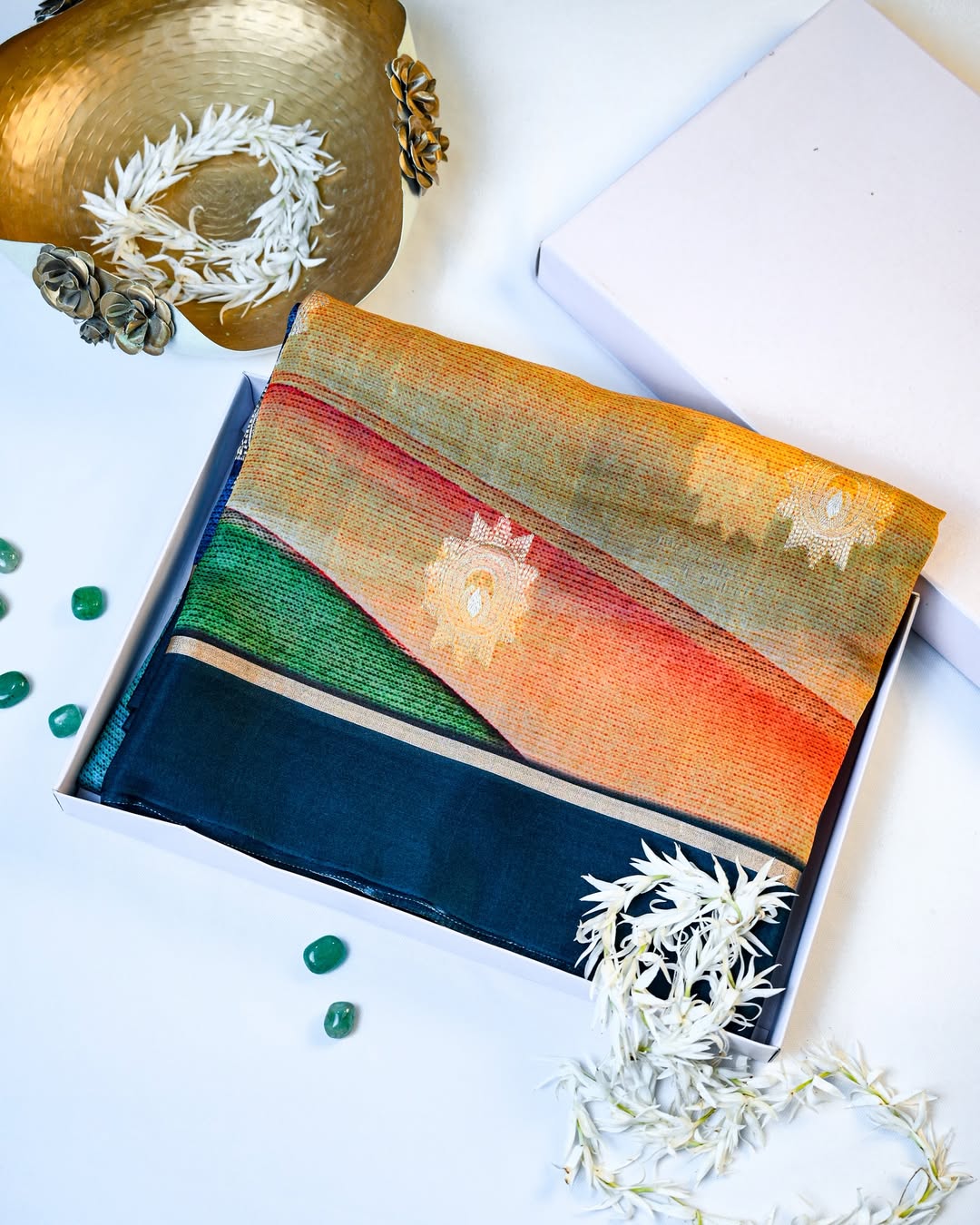 Light and airy, this Multi-Color Kadwa Organza Digital Print Saree carries a vibrant charm that moves with effortless rhythm. Handwoven in fine organza, it is adorned with lively digital prints, while the satin border catches the light with subtle elegance. Perfect for mornings at work, casual coffee outings, or intimate evening gatherings, it’s a saree that doesn’t just dress you—it adds a quiet brightness to your day.